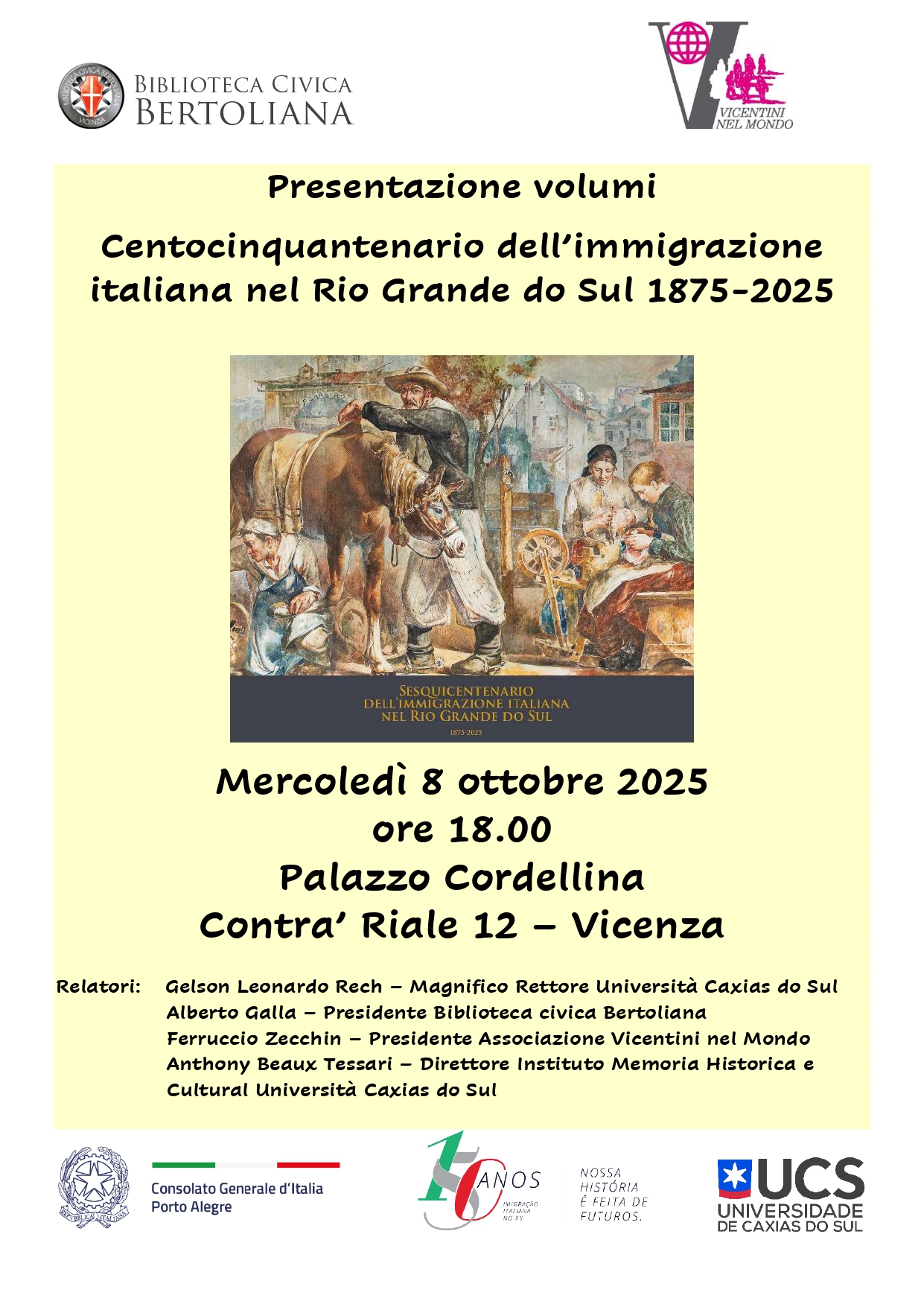 Vi aspettiamo mercoledì 8 ottobre alle ore 18.00 a Palazzo Cordellina a Vicenza per la presentazione di questa opera frutto del contributo di 68 studiosi e della collaborazione di 17 Università brasiliane e italiane.